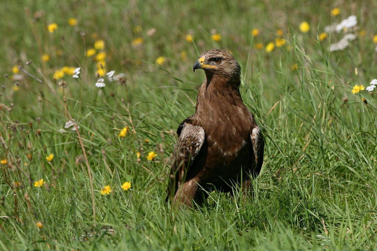 Schreiadler suchen ihre Beute nicht nur per Suchflug und Ansitzjagd, sondern auch zu Fuß. Dabei laufen sie über Wiesen und abgeerntete Äcker. (Foto: © Hans Glader / piclease)