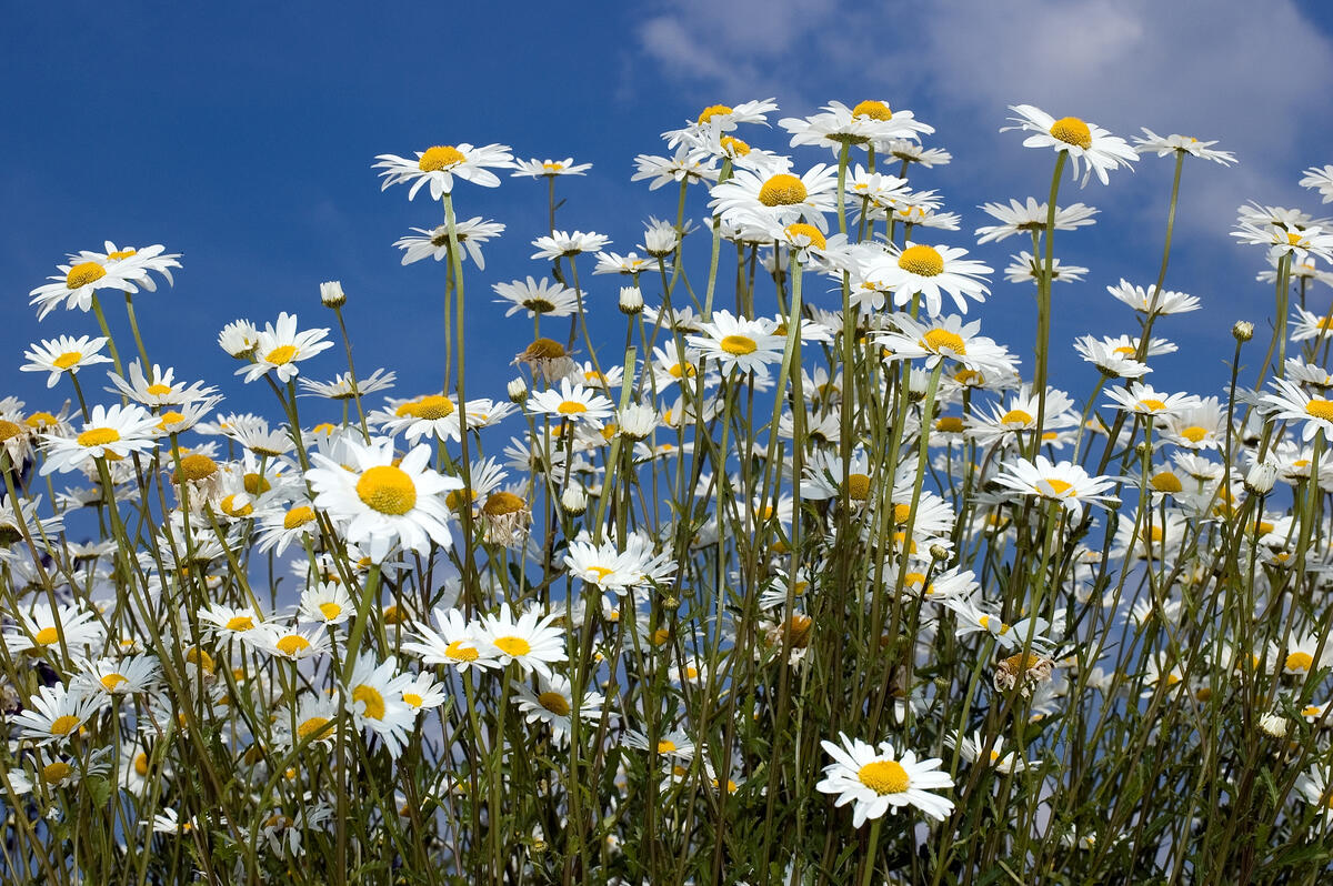 Die Wiesenmargerite(Leucanthemum vulgare) ist ebenso wie die Roggen-Gerste, der Wiesenkümmel und das Wiesenschaumkraut ein typischer Bewohner von Magerrasen. (Foto: © Susanne Fern / piclease)