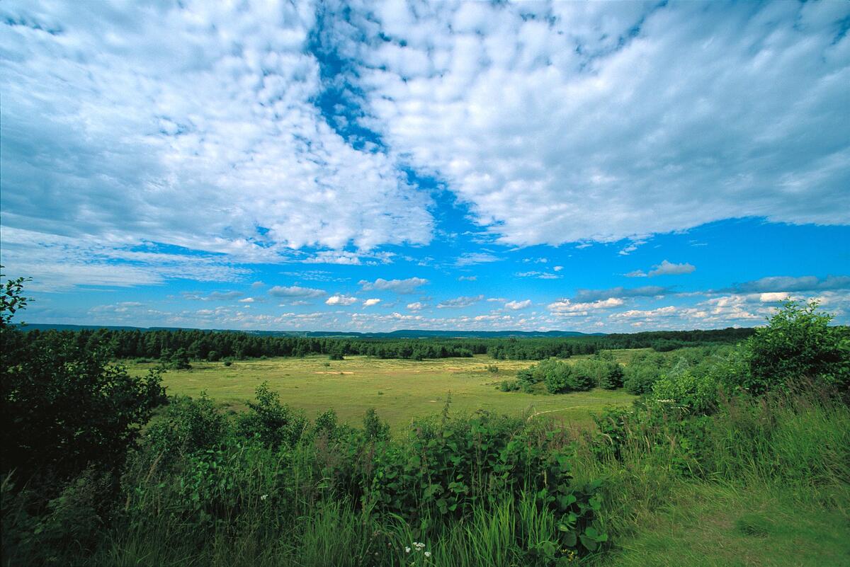 Aussicht vom »Kugelfangwall« Von diesem aufgeschütteten Wall kann man weit über die Offenlandfläche blicken und die Schönheit der Natur genießen.