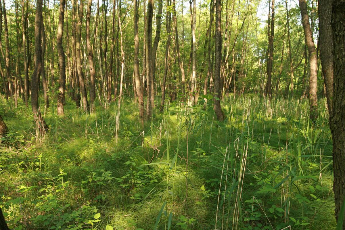 Erlenbruch: Die nassen, sumpfigen Erlenbruchwälder mit den typischen Schwarzerlen sind in Deutschland selten gewordene, wertvolle Lebensräume – etwa für die Gelbbauchunke.