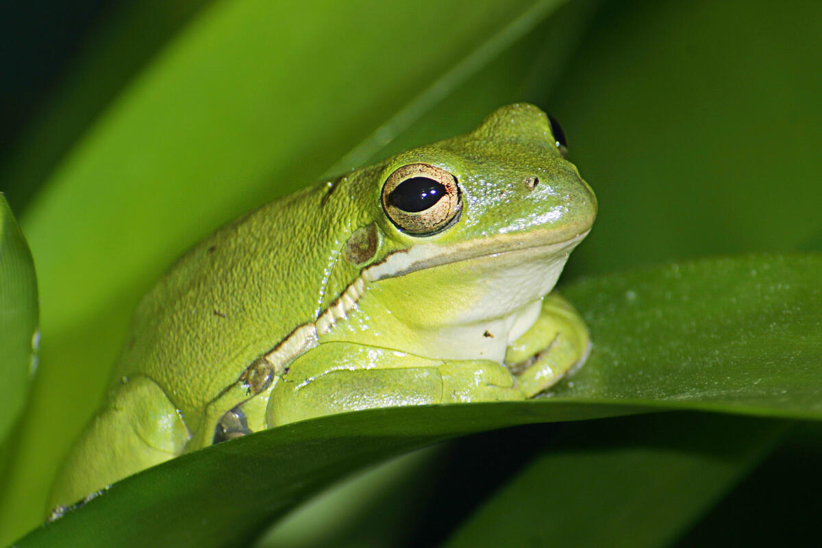 Der stark gefährdete Laubfrosch (Hyla arborea) ist die einzige Baum bewohnende Amphibienart Europas. Typische Lebensräume sind Auenlandschaften.