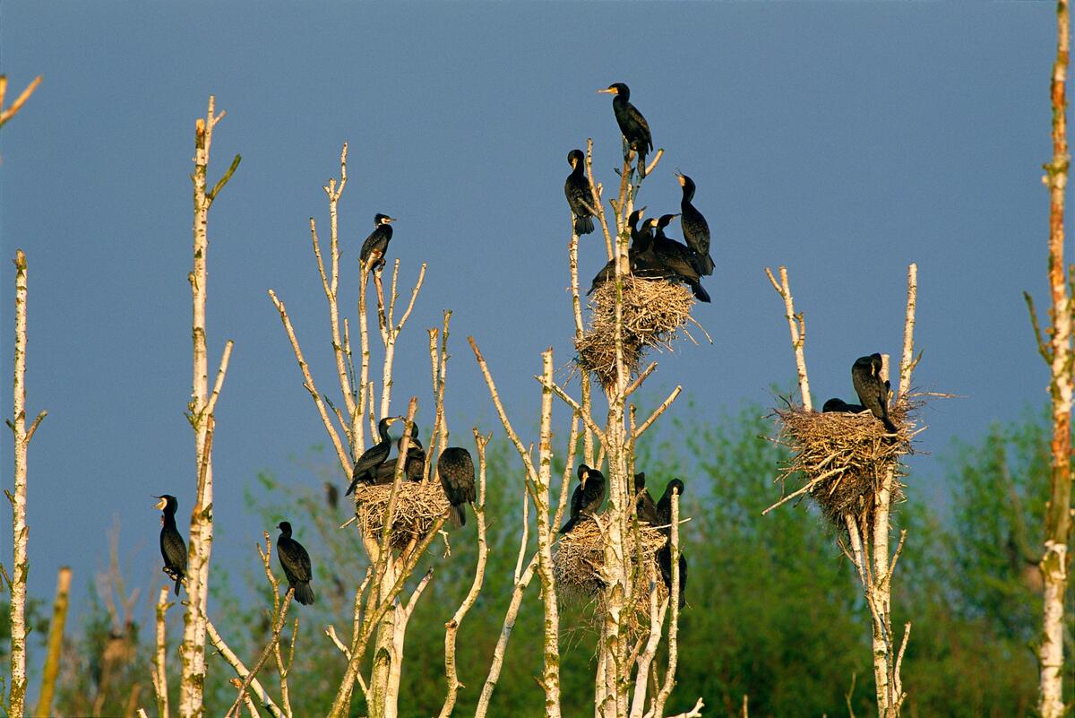 Kolonie von Kormoranen