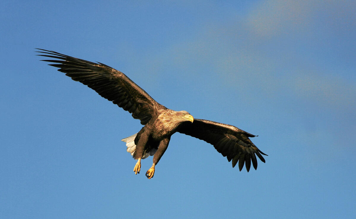 Seeadler: Usedom ist ein wichtiges Brut- und Überwinterungsgebiet für Seeadler. Zwei Paare der großen Greifvögel leben und brüten auf der Naturerbefläche. Sie bleiben ganzjährig in ihrem Revier.
