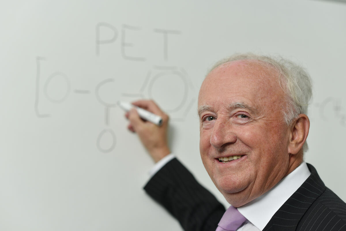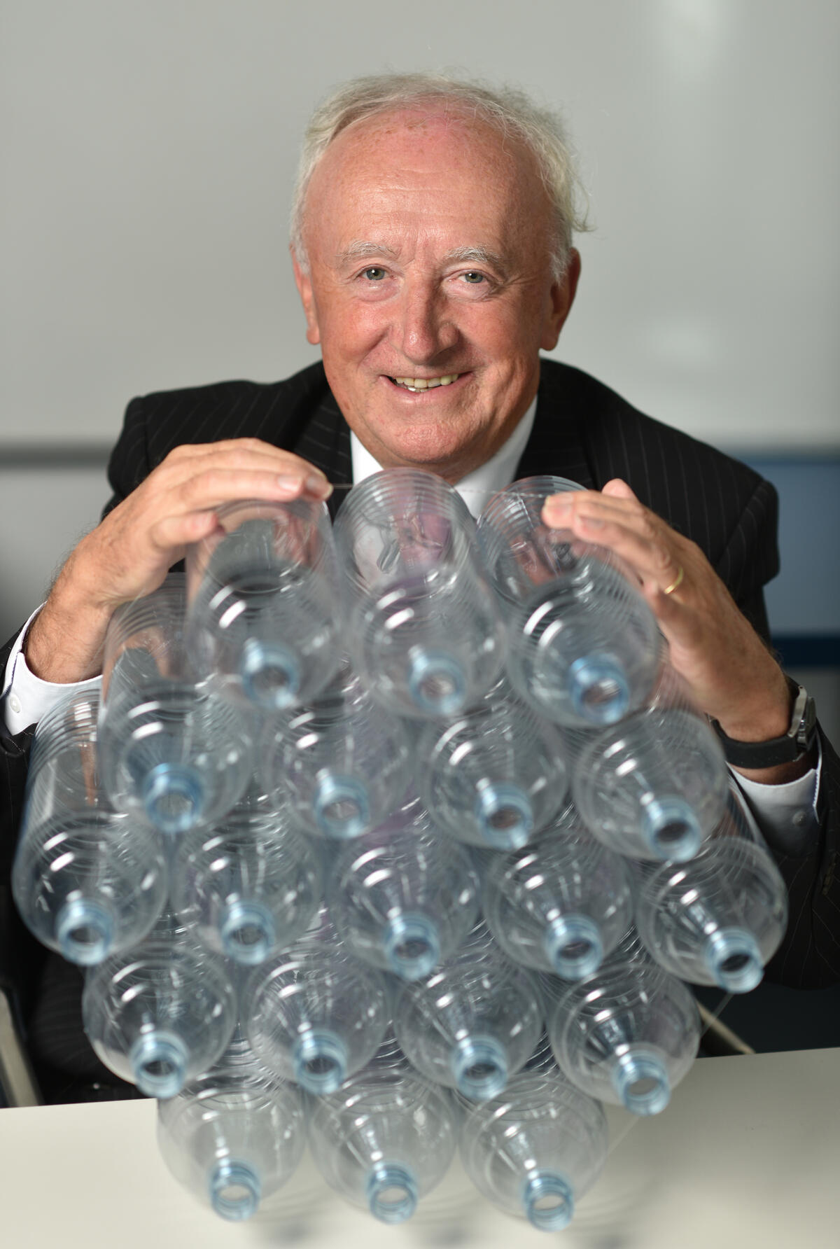 Das innovative Verfahren sei energie- und ressourcenschonender als das Herstellen von Flaschen aus neuem PET und leiste einen großen Beitrag zum Klimaschutz. Die Maschine könne bis zu drei Tonnen PET pro Stunde verarbeiten – bei einer Trefferquote von bis zu 98 Prozent. Bis heute seien über 30 Anlagen weltweit verkauft worden, was einem PET-Recycling von jährlich rund 650.000 Tonnen entspreche. Zusammengerechnet würden 1,2 Millionen Tonnen des fossilen Rohstoffs Öl eingespart. Pro Tonne wiederverwertetes PET würden drei Tonnen Treibhausgase vermieden. Das breitbandige Messverfahren biete Recyclingunternehmen Zukunftssicherheit, da durch diese leistungsstarke Technologie auch heute noch unbekannte Sortieranforderungen gelöst werden könnten. Bottermann: „Der Wert dieser wegweisenden Entwicklung wird deutlich, wenn man sich vor Augen führt, dass der Anteil von PET in Getränkeverpackungen weltweit bereits deutlich über 50 Prozent liegt. Bis heute dominieren Einwegflaschen den globalen Getränkemarkt. Deshalb benötigen wir dringend hochwertige Recyclingverfahren für diese Abfallströme.“ Neben PET könnten auch andere Kunststofftypen erkannt und aussortiert werden. Zurzeit entwickle das Team um Professor Krieg einen Prototyp, der Kunststoffe aus zerkleinerten Elektroaltgeräten wie Computern und Autos analysiert und sortiert.